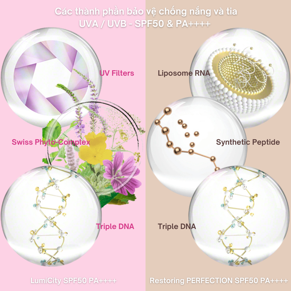 So sánh chi tiết Restoring PERFECTION SPF50 PA++++ và LumiCity SPF50 PA++++